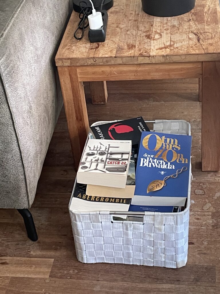 Nou staan mijn ongelezen boeken niet op een plank maar liggen ze te wachten in een doos.