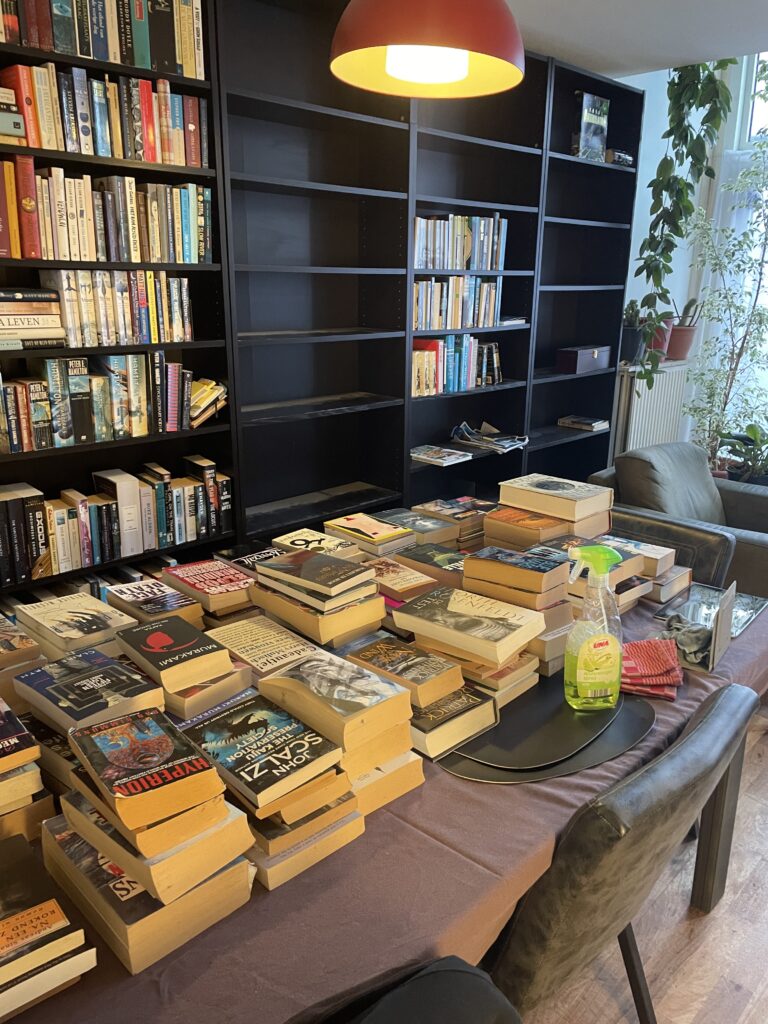 Veel boeken over voetballers, zoals onder anderen Willem van Hanegem (dikke pil van 4 kilo), Cruijff, Zlatan en Dennis Bergkamp. Want wie wilde als kind niet zelf een beroemde voetballer worden of zijn hoop daarop projecteren op zijn kinderen? Politici heb ik ook iets mee, hoe kom je erbij politicus te worden? Uit Amerika o.a. Michelle en Barack Obama, Bill Clinton, Joe Biden, maar geen republikeinen. En twee uitersten in het Nederlandse politieke spectrum: Femke Halsema en Frits Bolkesteijn. En dan natuurlijk muziek. Heb wat boeken over bands, zo als U2, Led Zeppelin, Joy Division. En vele rockers, als Bruce Springsteen, Neil Young en Patti Smith, Keith Richards (leeft nog steeds!). Want wie wilde als kind nou niet een beroemd muzikant worden etc. En dichter bij huis een heel verrassend boek over Raymond van het Groenewoud (nooit geweten dat hij zo’n rokkenjager was). Wetenschap en technologie heeft ook mijn belangstelling. Ben zelf geen beta en juist daarom heb ik een mateloos respect voor de exacte wetenschappen. Van Darwin tot Einstein, Oppenheimer, Sartre, Steve Jobs, Da Vinci en Oliver Sacks, het boeit me allemaal. een heel andere categorie zijn dan weer artiesten en schrijvers: Roger Vadim (om jaloers op te worden), Simone Signoret (krachtige vrouw), Dali (laten we het houden op geniaal, maar gek mag ook), Keith Haring (de inspiratie voor onze zelf ontworpen trouwkaartjes), Primo Levi (tragisch), Jan Wolkers, en nachtburgemeester Jules Deelder. En vele andere meer of minder opmerkelijke persoonlijkheden, van Mandela (meer een hagiografie) tot Johan Derksen (houdt meer van blues dan voetbal).